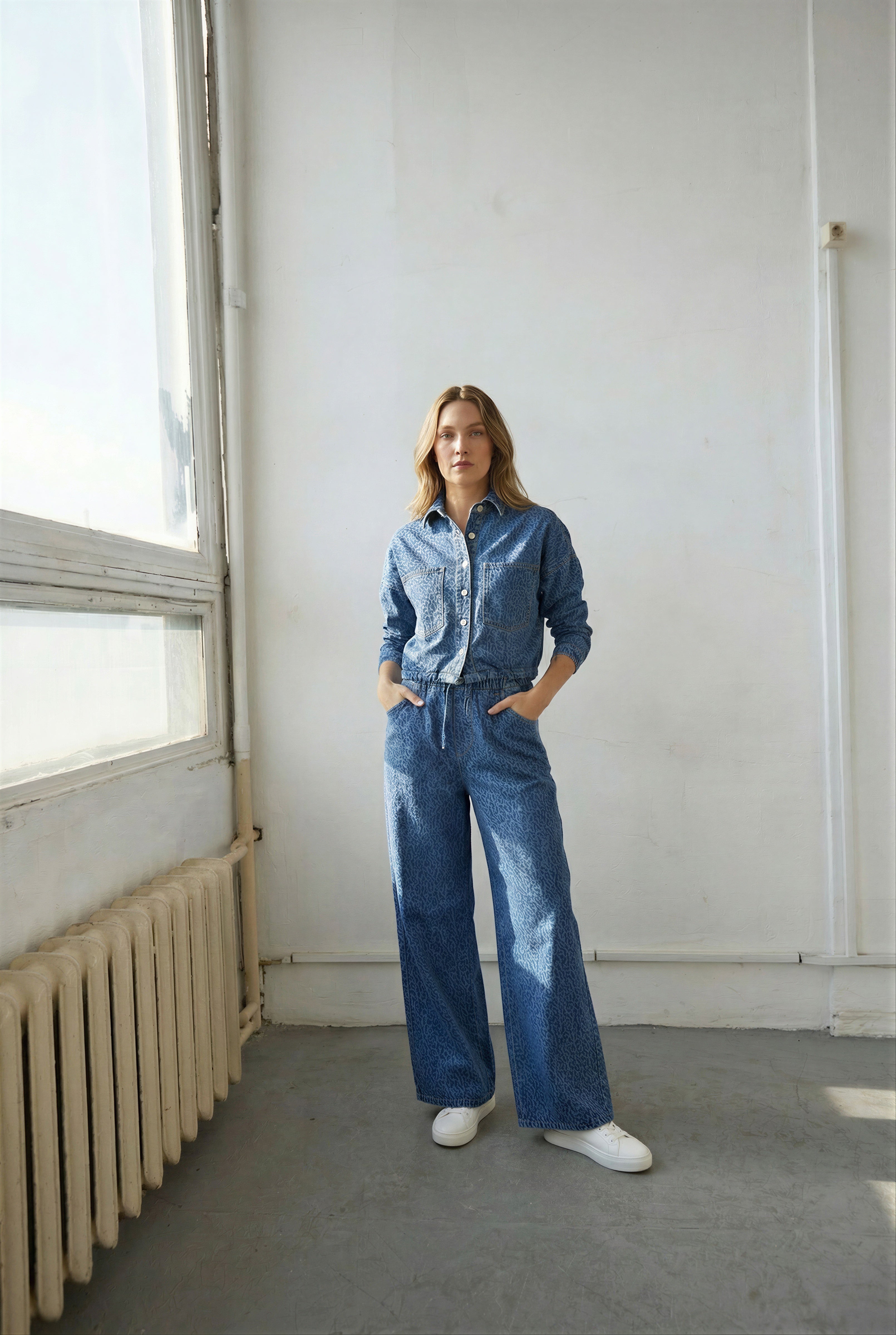 A denim you can wear as a statement without feeling loud. The leopard print is subtle, and the cotton denim keeps the fit comfortable and familiar. Easy to style with simple tops and knits.