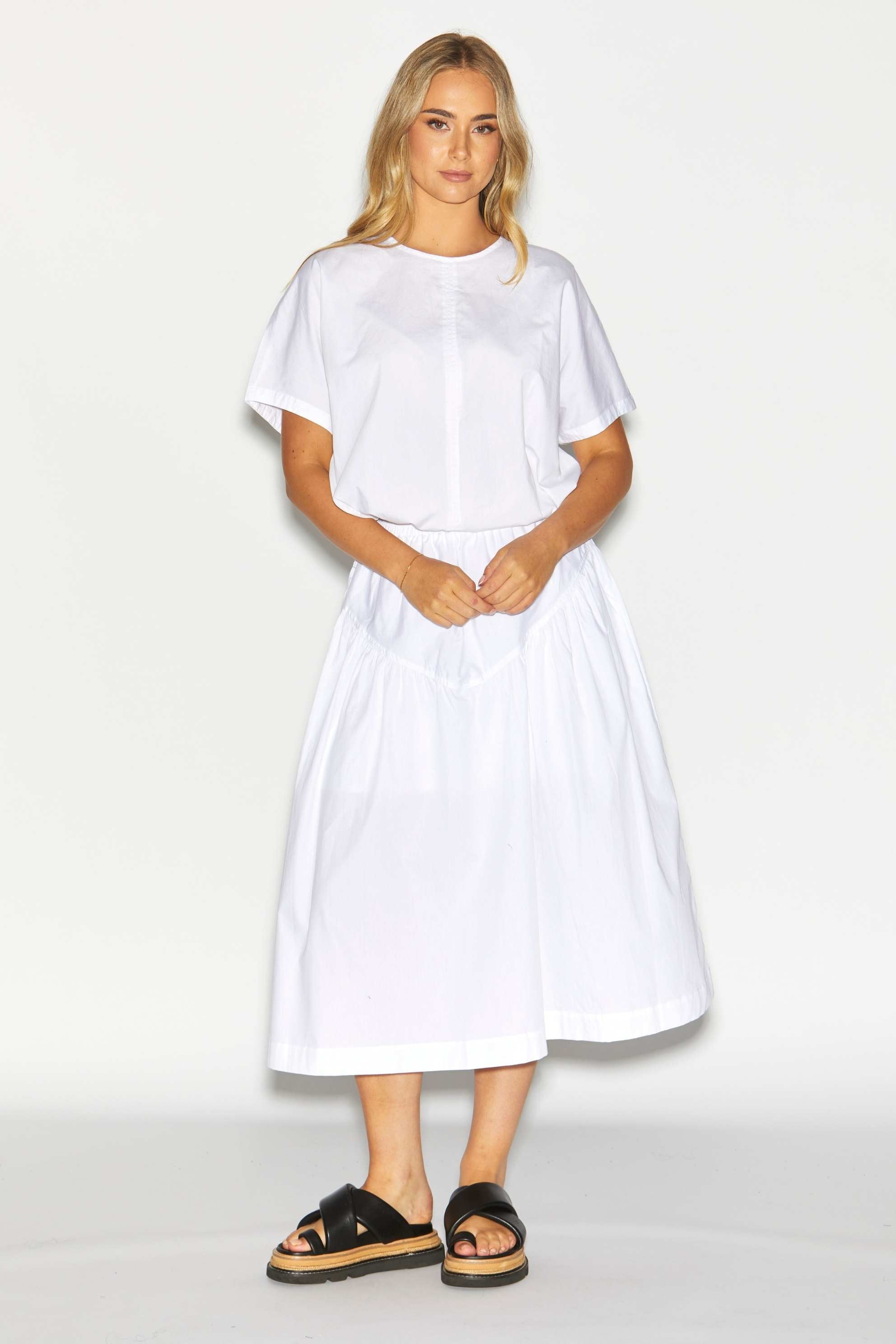 A light, easy skirt that’s made for warm weather and spontaneous plans. The poplin keeps it structured enough to feel polished, while still being relaxed and comfortable for everyday. Works beautifully with tanks, tees, or its matching tops.