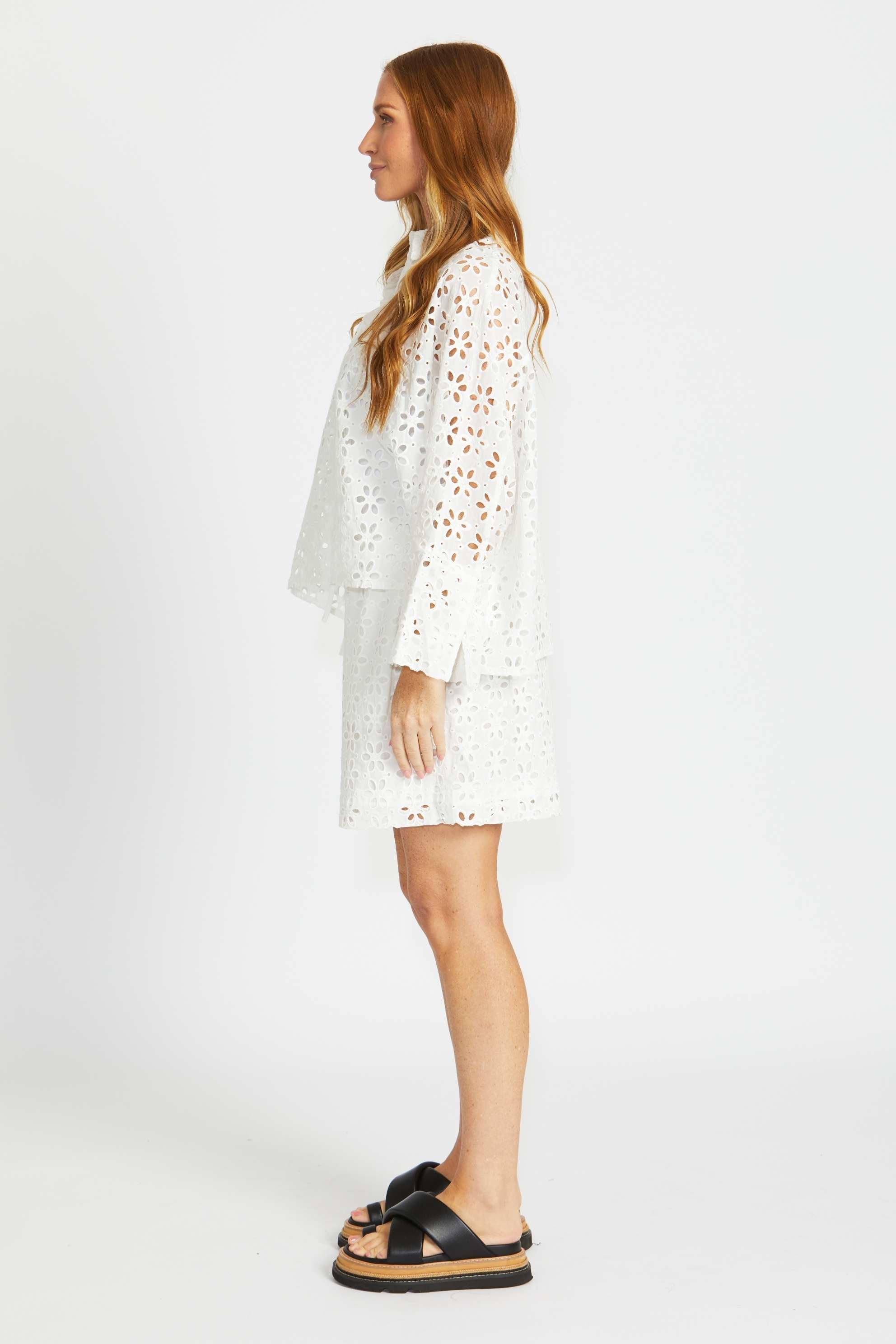 The Pip Shirt is your easy “I want to look put-together without trying” piece. The broderie gives it that little bit of pretty without feeling precious, and the relaxed shape keeps it wearable for everyday. Throw it on with denim or shorts and you’re done.