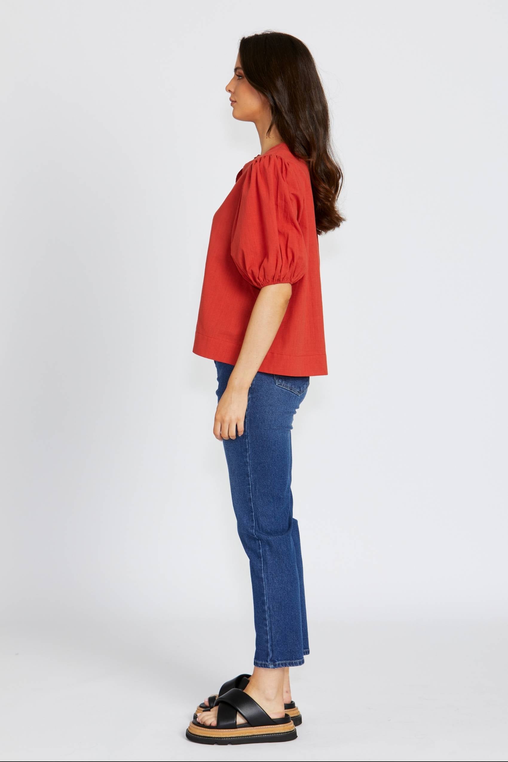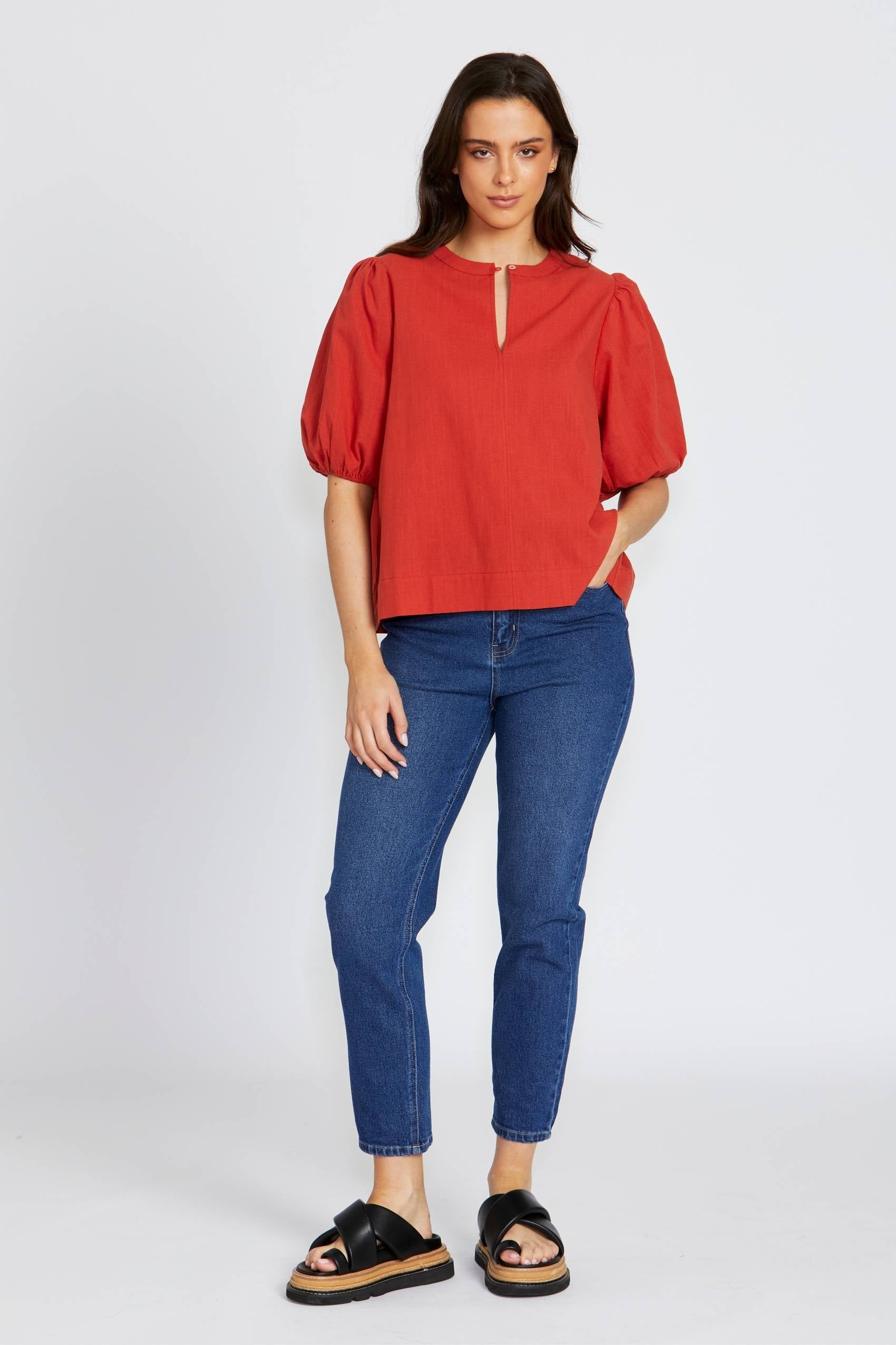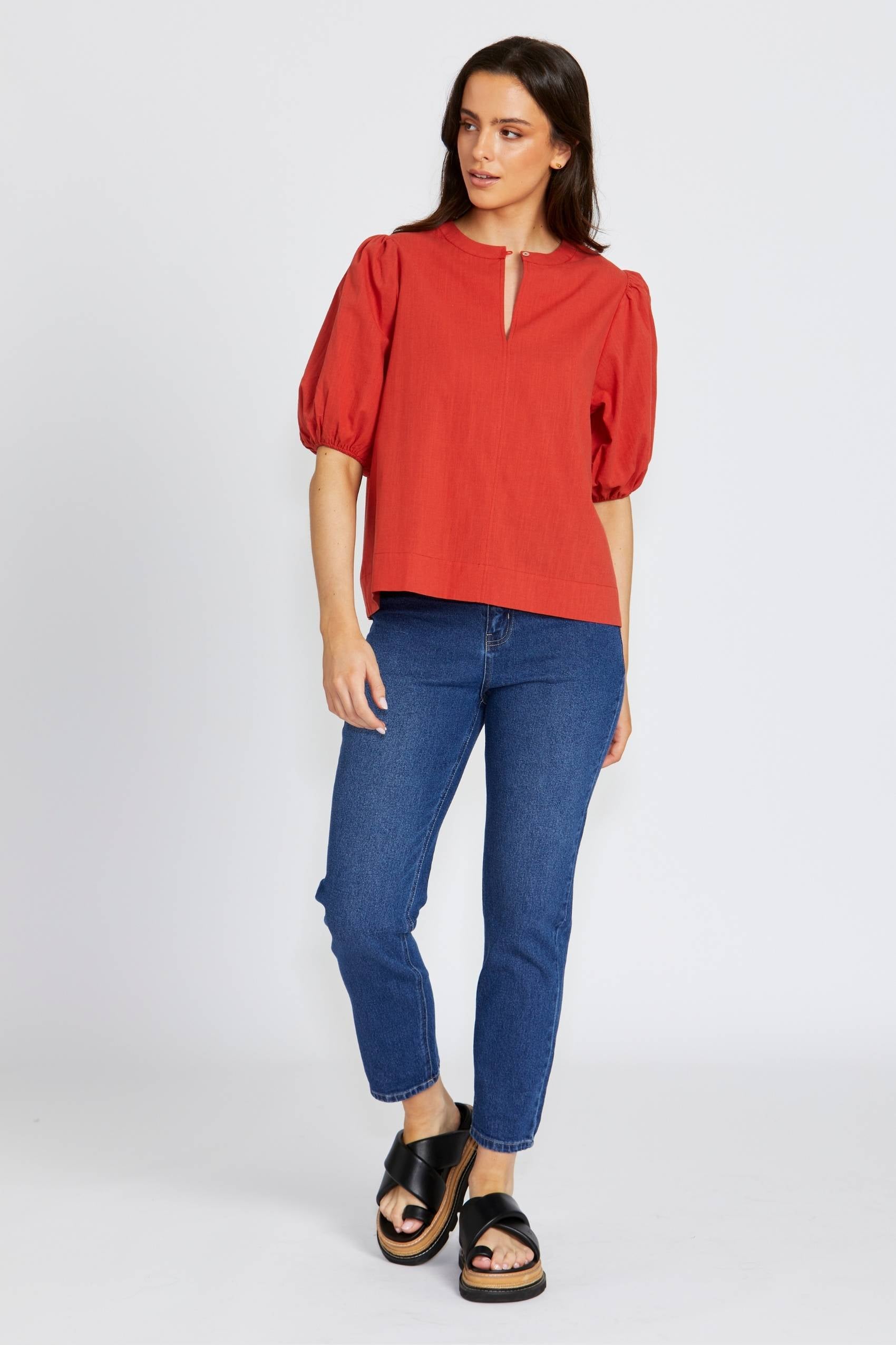 A breezy, textured cotton blouse with a soft silhouette. The Lilith Top features gathered sleeves and a relaxed fit, making it perfect for warm days or effortless layering. Pair it with jeans for a casual look or dress it up with tailored pants.
