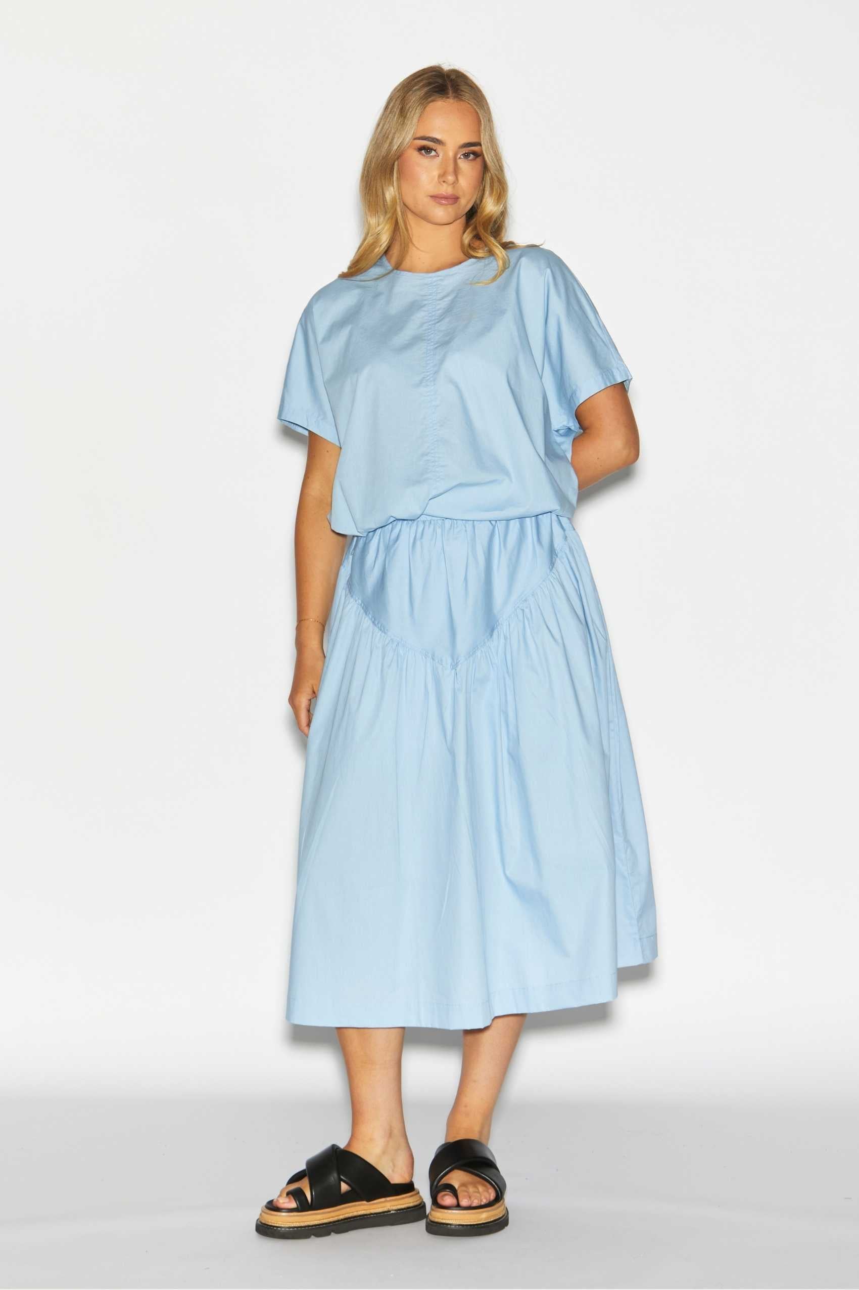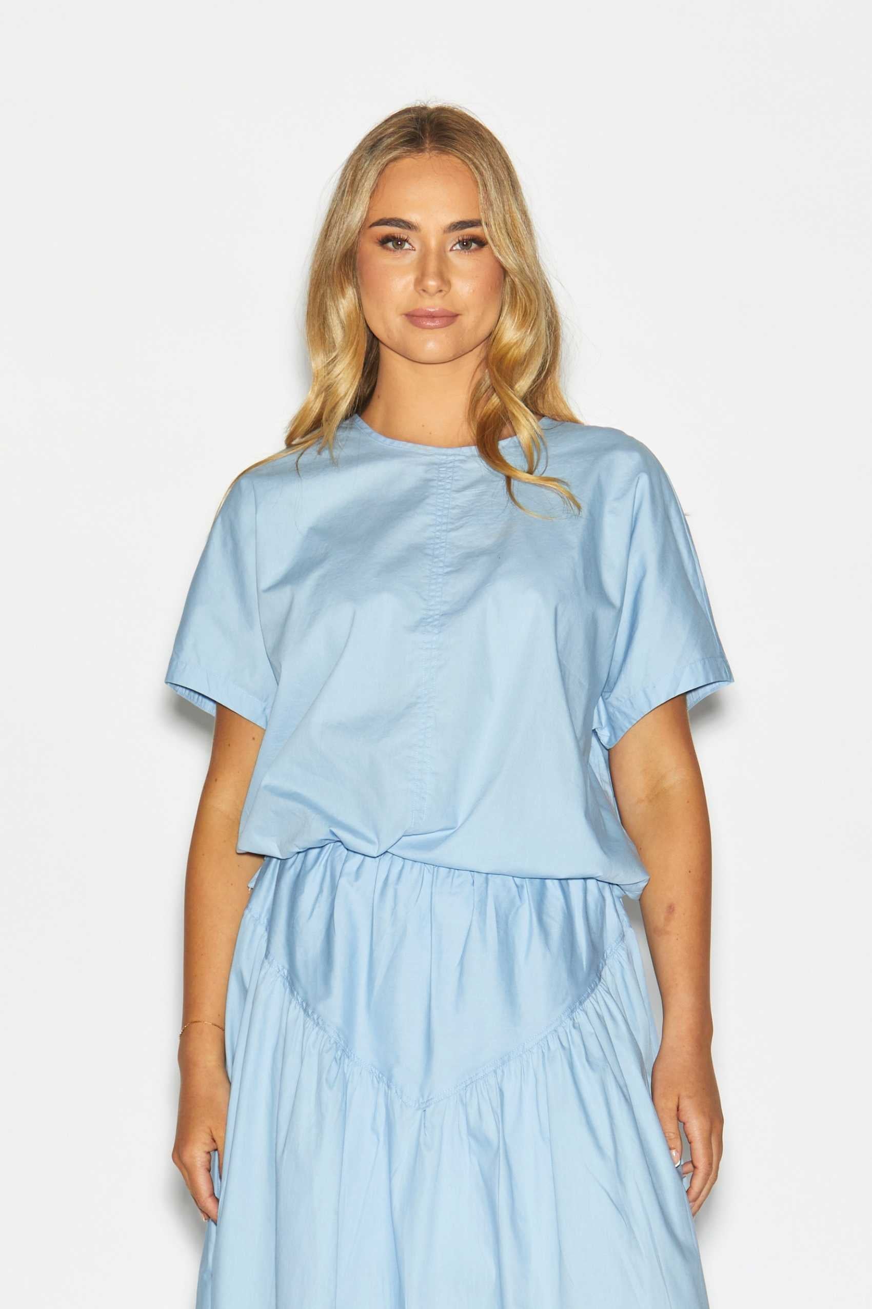 A soft chambray version of the Posey Top that feels easy and wearable while still looking polished. The poplin gives it structure without stiffness, making it a great option for both casual days and slightly dressier plans.