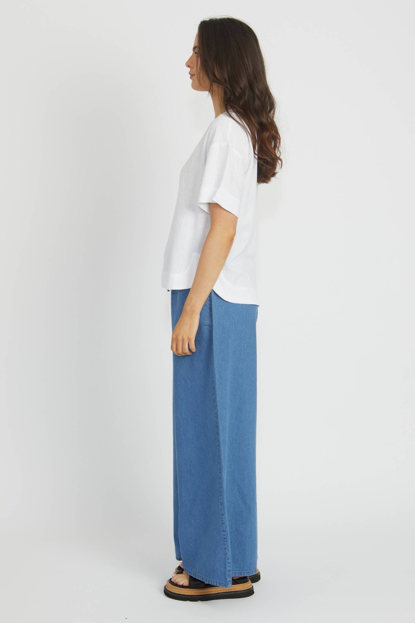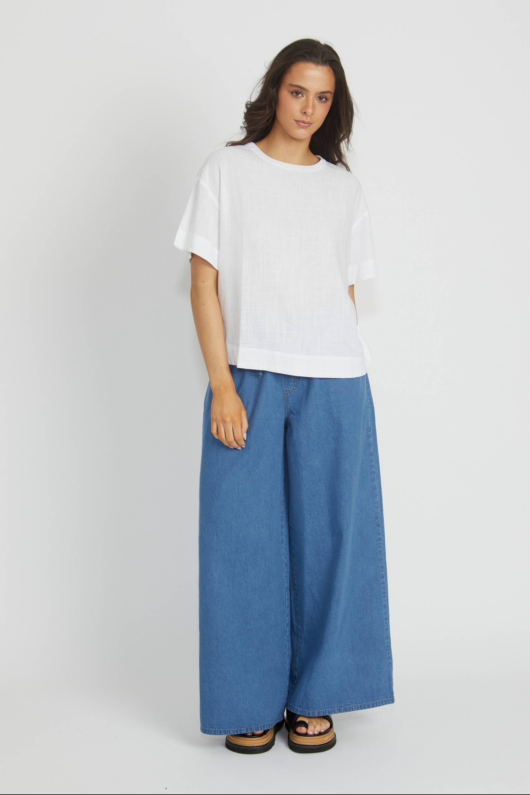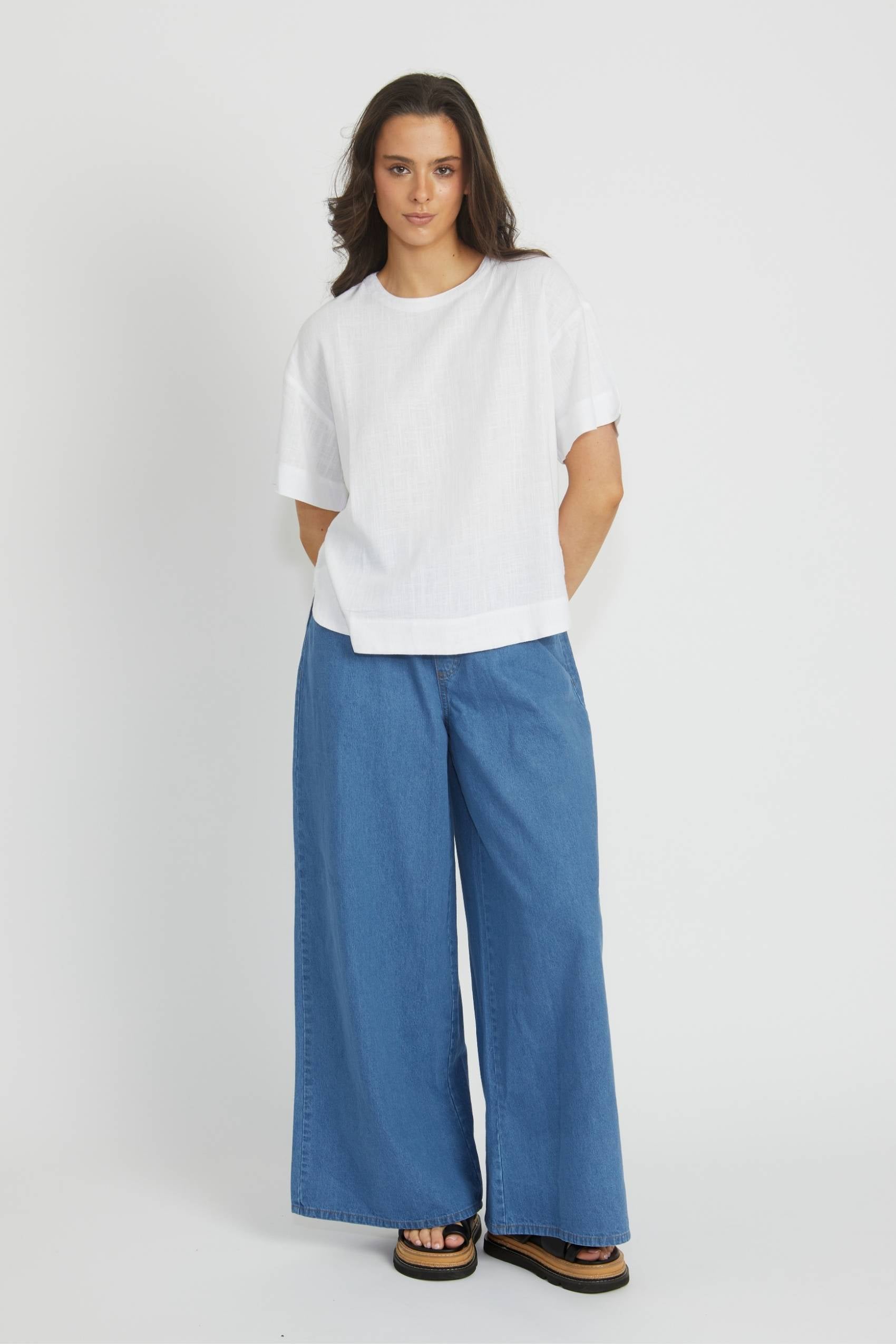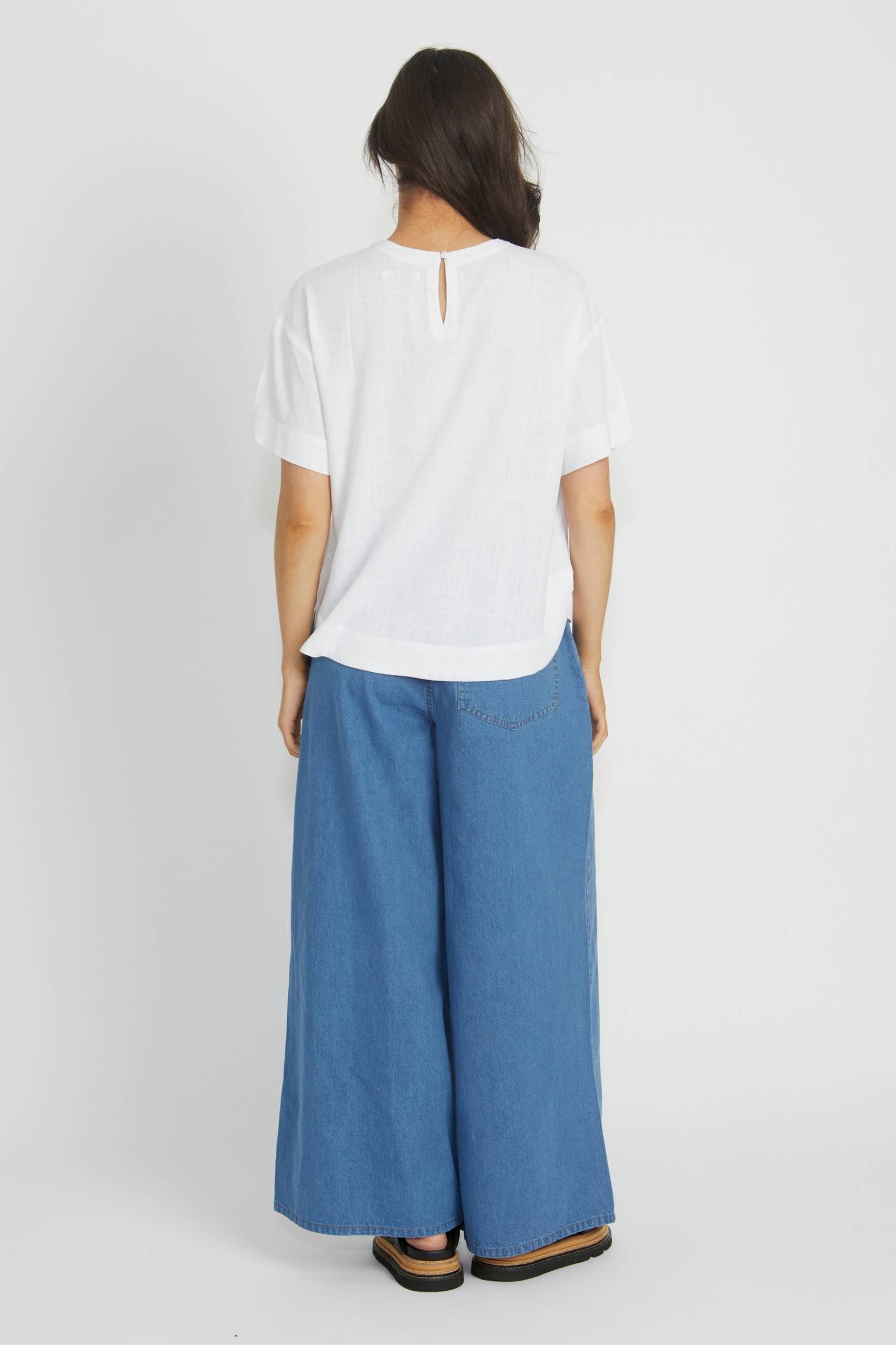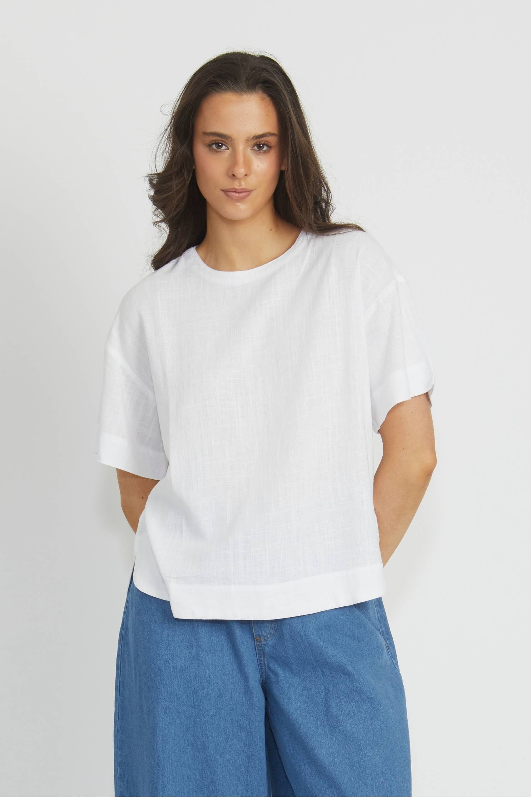 A wardrobe essential, the Harrie Top features a boxy silhouette that skims just below the waist for a flattering fit. Made from a breathable viscose-linen blend, it's perfect for easy styling and everyday wear.