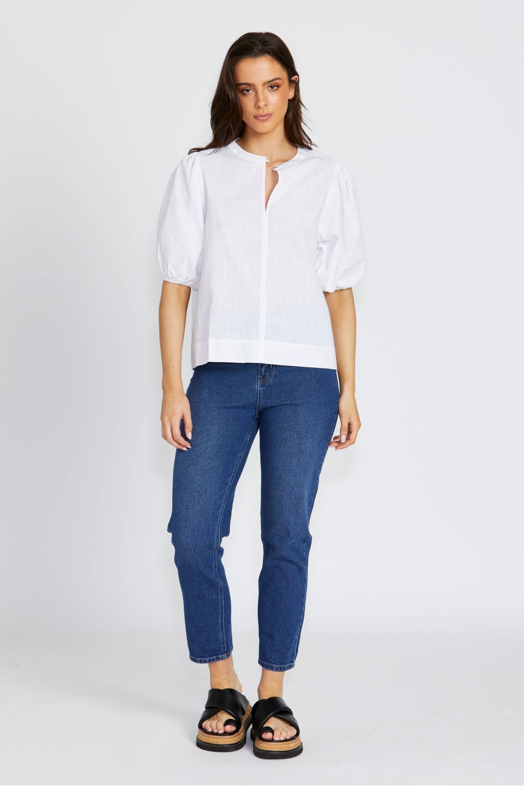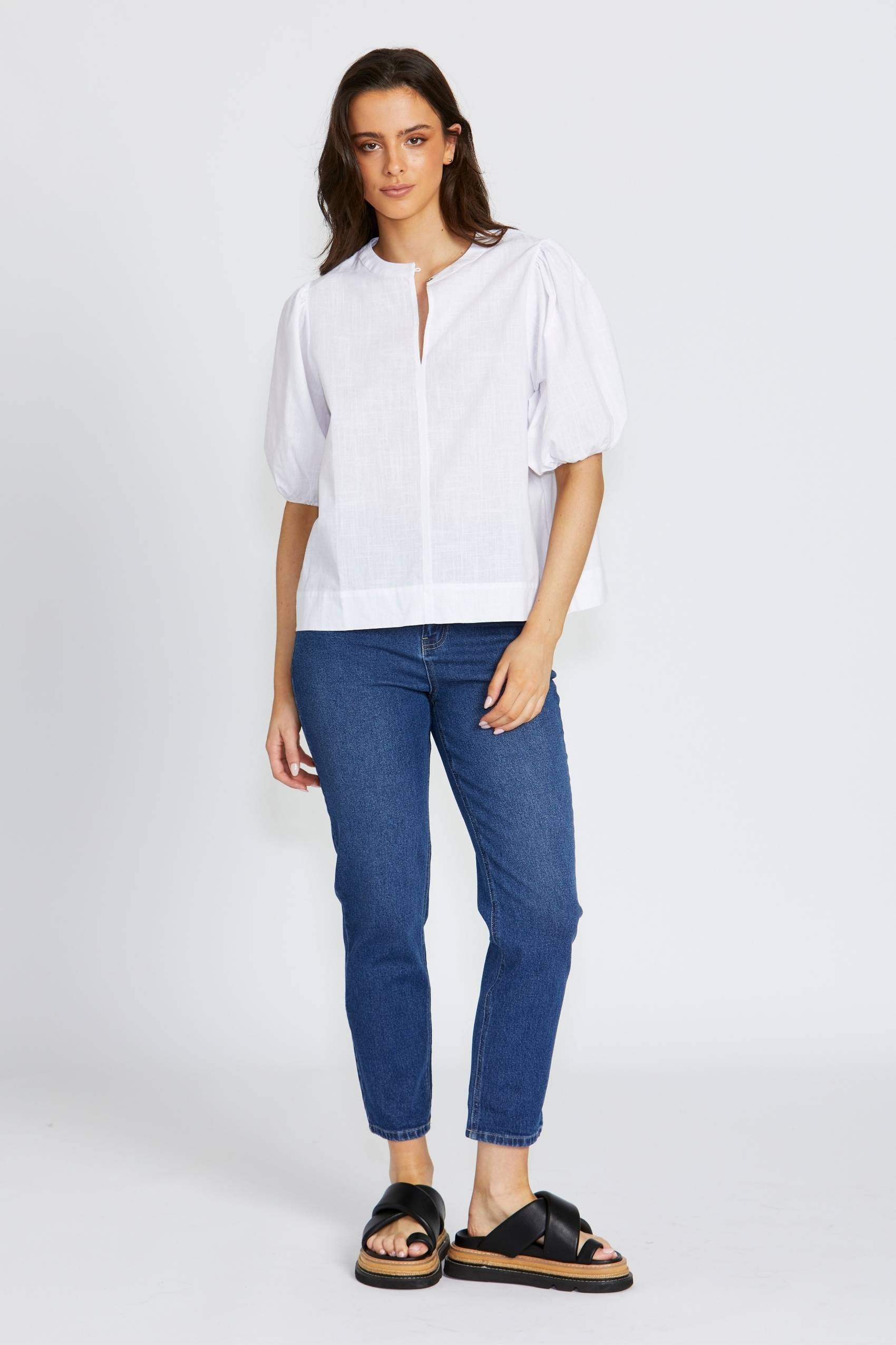 A breezy, textured cotton blouse with a soft silhouette. The Lilith Top features gathered sleeves and a relaxed fit, making it perfect for warm days or effortless layering. Pair it with jeans for a casual look or dress it up with tailored pants.